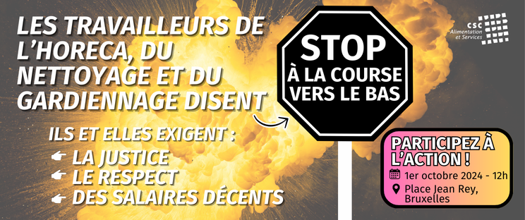 Le 1er octobre 2024, un millier de travailleurs essentiels – agents de nettoyage, de sécurité et travailleurs de l’Horeca - venus de toute l'Europe se rassemblent à Bruxelles pour faire changer les règles de l'UE en matière de marchés publics qui ont alimenté un nivellement par le bas des conditions de travail.